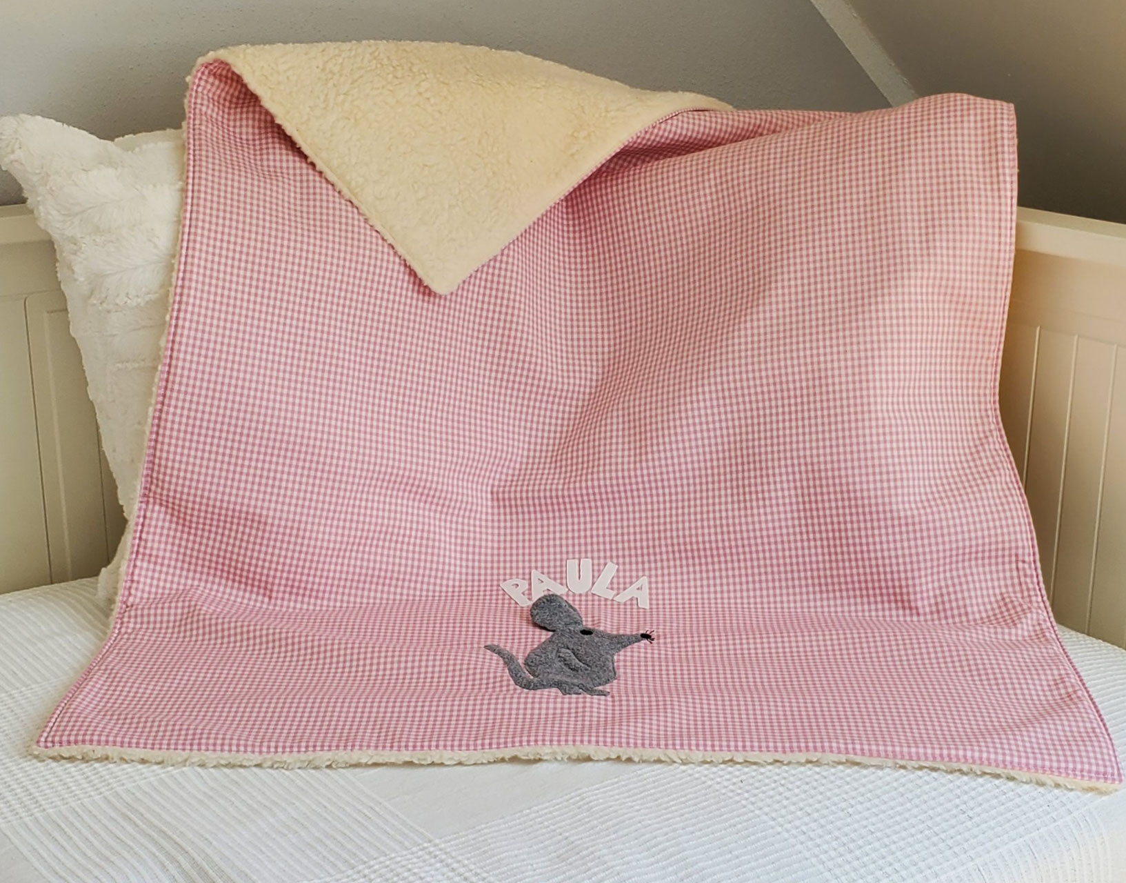 In liebevoller Handarbeit fertige ich die weiche Kuscheldecke aus hochwertigem Teddyfell und Vichykaro-Baumwollstoff nach Deinen individuellen Wünschen an. Du hast die Möglichkeit, sowohl das Tiermotiv als auch die Vichykarofarbe aus meinem Angebot auszuwählen, um ein einzigartiges Unikat zu schaffen!